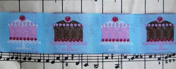 Renaissance Ribbons; Tiny Cakes and Fleur de lys are 1" wide; Ruler is 5/8" wide; See drop down menu for per yard pricing.