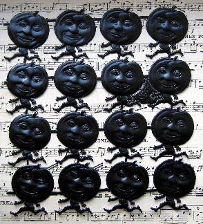 Gold Jack-o-Lantern Men German Scrap; 16/pack; 1 & 1/8 x 1 & 1/4"; Price $3.99