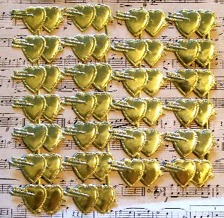 Gold Double Heart German Scrap, 26/pack, largest 1.5" wide, GS077, Price $3.29